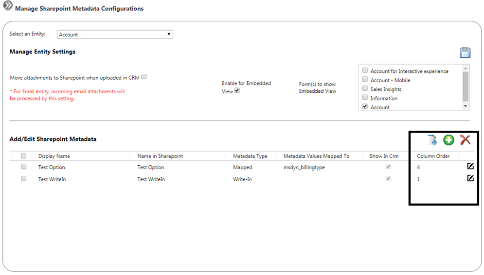 - Ability to add/ edit metadata in Sharepoint through CRM