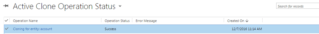 If the “Operation Status” = Success, the clone operation has been completed successfully. In case of any error, the Operation Status would be updated to Error and the Error Message would show up in the Error Message column’’.