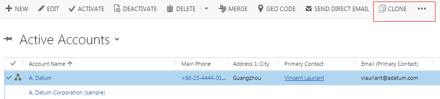 You select an Account in the HomePageGrid, the clone button becomes visible.