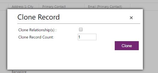 - The number of cloned records you would like to create. Currently the hard-limit is 5 I,e you can create up to 5 cloned records in a single clone operation.