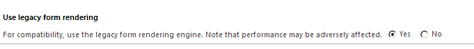 I suggested this workaround for some, however as expected this is not a very viable solution to propose to the customer. A significant performance degradation has been observed by consultants for forms with lot of controls and scripts in legacy form rendering and many consultants promised a better performance to their clients after upgrade with the new turbo forms feature.