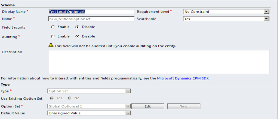 Recently I came across a situation where my local optionset was pointing to one global optionset and then I needed to point to another global optionset. In CRM to do this, you would have to drop the field and recreate field. But the problem is if you have a running system which is being actively used, you may not be at the luxury of dropping and recreating the fields. Let’s see how we can overcome this situation.