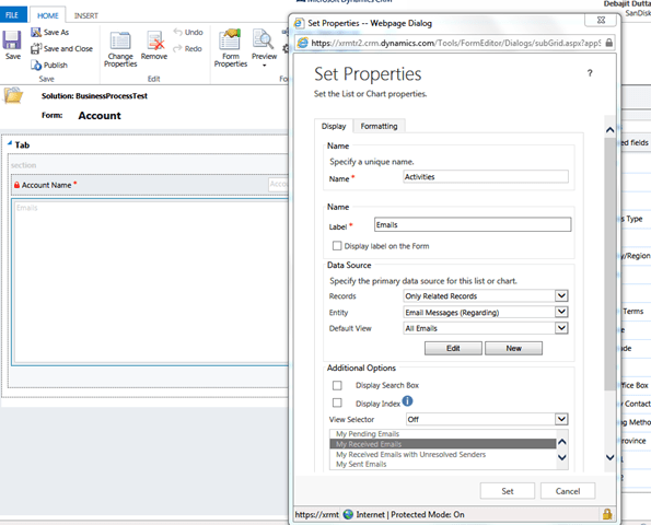 Recently we had a requirement in our project where on the opportunity form, when the sales manager selects the account, the system should show the list of activities related to the account. The requirement looked very interesting and the first thing that came to our mind is to utilize the Quick View form to achieve the same. The following are the list of steps of what we did.
