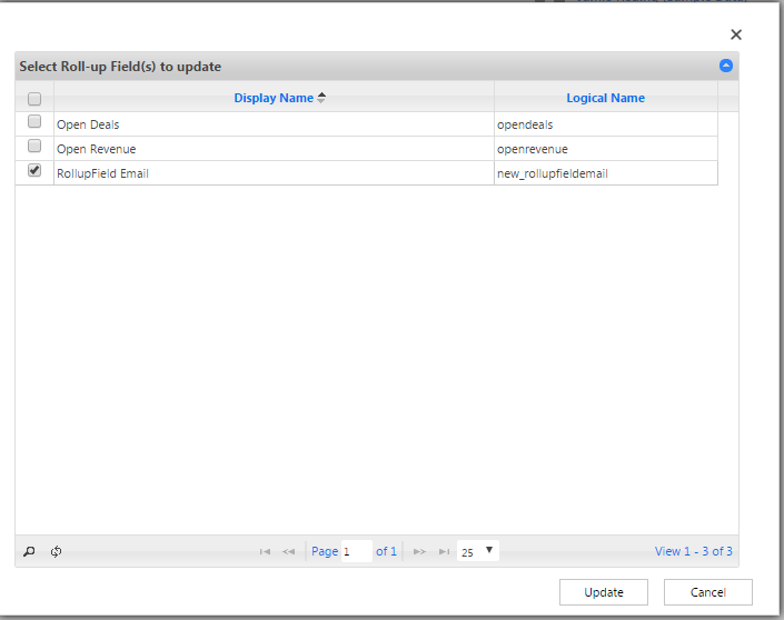 Once you click the button, a window will pop-up with all the roll-up fields for the entity.