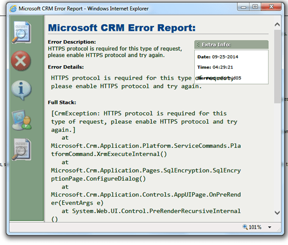 Isn’t it really simple to just go to Settings->Data Management  and enable Data Encryption with the key of your choice. Well it is. However the moment you try to do so and your CRM website is not configured with SSL certificate, you get the following error.