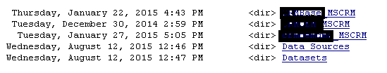 So I logged in the report sever and browsed to the report. There is a trick in the way you should browse the report so that you can troubleshoot it. One of our developers was using the url – /ReporServer">http://<servername>/ReporServer. And below is the screen you get once you browse the url. We have three organizations in our environment and for each of organizations, there exists a report folder in the environment which I have blurred here.
