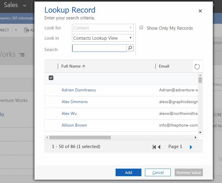 Show Lookup Dialog dynamically using script in Dynamics 365